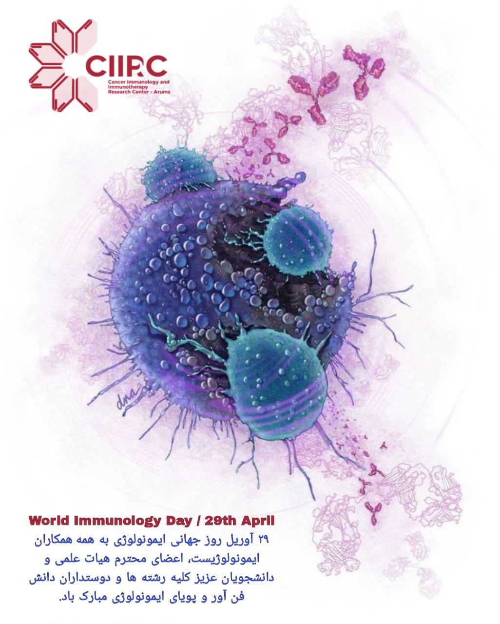 ۲۹ آوریل روز جهانی ایمونولوژی به همه همکاران ایمونولوژیست، اعضای محترم هیات علمی و دانشجویان عزیز کلیه رشته ها و دوستداران دانش فن آور و پویای ایمونولوژی مبارک باد.